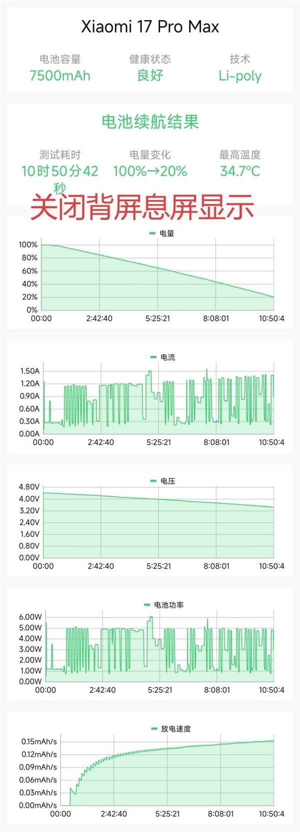 小米17 Pro Max的电池为7500mAh的小米金沙江电池,采用16%硅含量的新一代球形硅负极材料,显著的增加了电池密度。