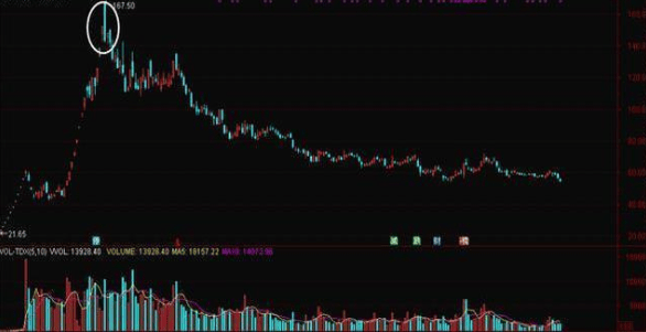 第一,套在阶段性热点龙头的顶部。下图这只个股时次新股,开板经过整理,拉出一波轰轰烈烈的大牛行情,如果我们买在了顶部的位置(图中白色圈圈的地方),想要通过死扛来解套,基本不太可能,就算有可能,也不知等到猴年马月。中石油就是很好的例子,新股上市那会,最高去到48块,但没想到那是历史最高点,15年牛市时最高才回到14块多,远远没到历史最高点,目前保持在10块以下震荡。所以,我们要注意了,新股上市被资金爆炒,估值严重溢价,若套在了顶峰,那还是早点止损吧。